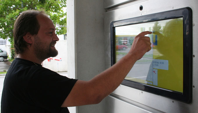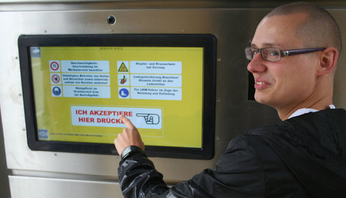 Zum Zeitpunkt der Umsetzung waren großformatige Touchscreens noch selten am Markt. Dennoch gelang es uns, ein Modell zu finden, das den extremen Temperaturschwankungen im Sommer wie im Winter zuverlässig standhielt. Die Auswahl eines passenden Industrie‑PCs war vergleichsweise unkompliziert. Über die Parallelschnittstelle (klassischer Druckerport) konnten wir den Industrie‑PC direkt mit der Steuerung verbinden. Das Steuerungsgerät war anschließend in der Lage, den Schranken präzise zu öffnen und zu schließen – eine stabile, effiziente und praxistaugliche Lösung.