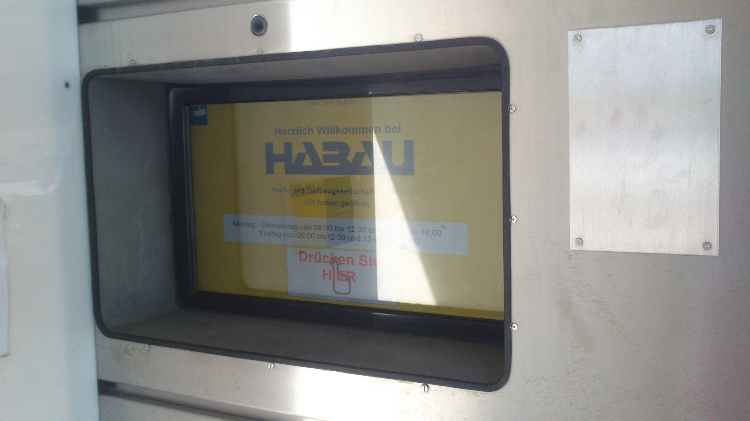 Konzeption, Grafikdesign, Programmierung und die komplette Steuerung des Schrankensystems – alles aus einer Hand, alles von SONEC. Für die Firma HABAU in Schwertberg entwickelten wir ein maßgeschneidertes Eingangsterminal, das sowohl funktional als auch robust sein musste.